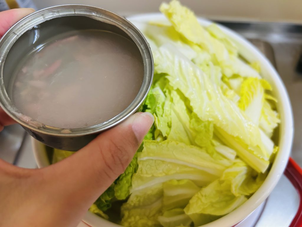 ③シーチキンを鍋にイン