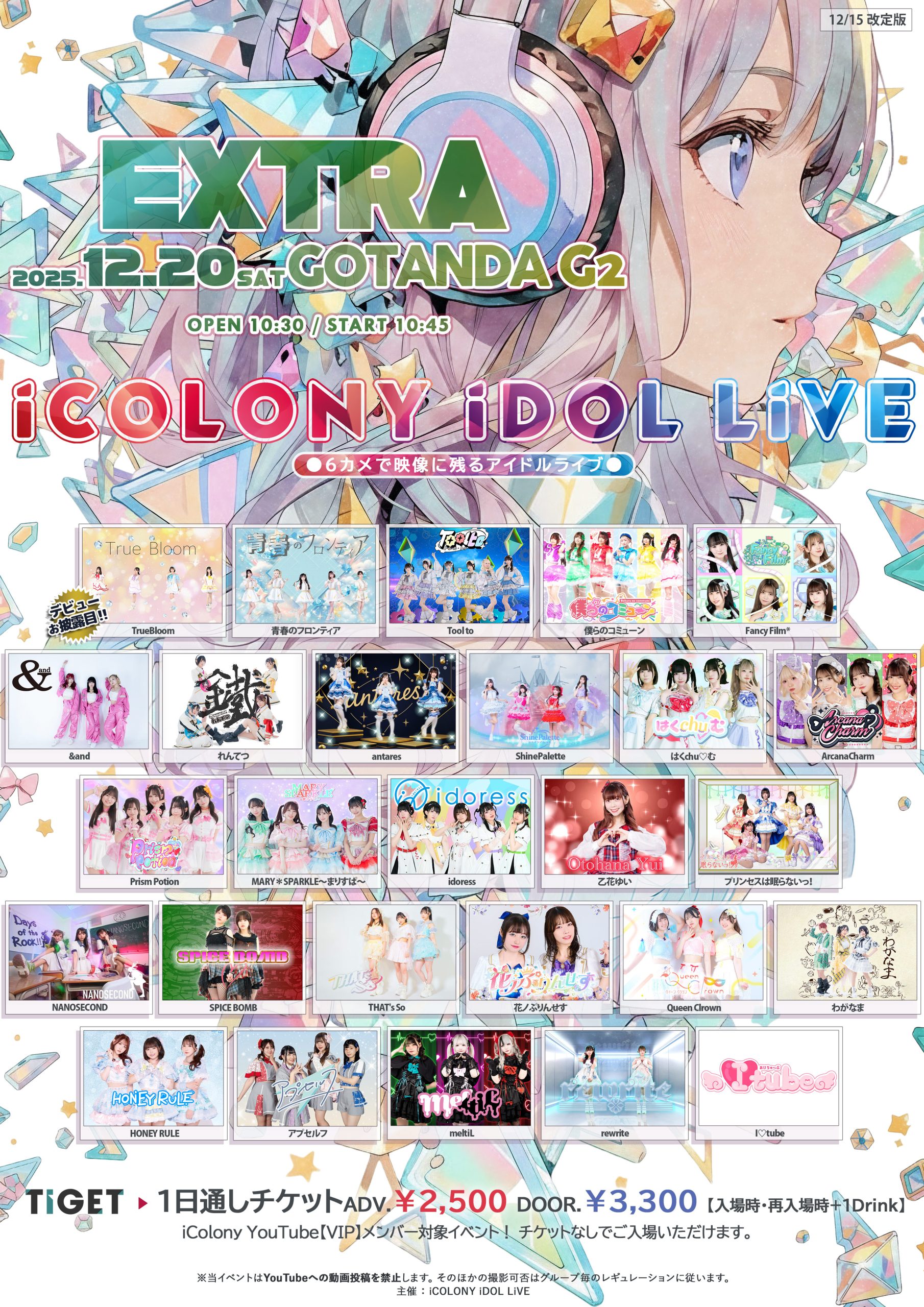 出演者 Tool to / 青春のフロンティア / 僕らのコミューン / Fancy Film* / antares / ShinePalette / MARY*SPARKLE~まりすぱ~ / &and / SPICE BOMB / はくchu♡む / meltiL / PrismPotion / NANOSECOND / プリンセスは眠らないっ! / THAT’s So / 乙花ゆい / idoress / Queen Clrown / rewrite / HONEYRULE / I♡tube / アプセルフ / ArcanaCharm / 花ノぷりんせす / TrueBloom / れんてつ / わがなま
