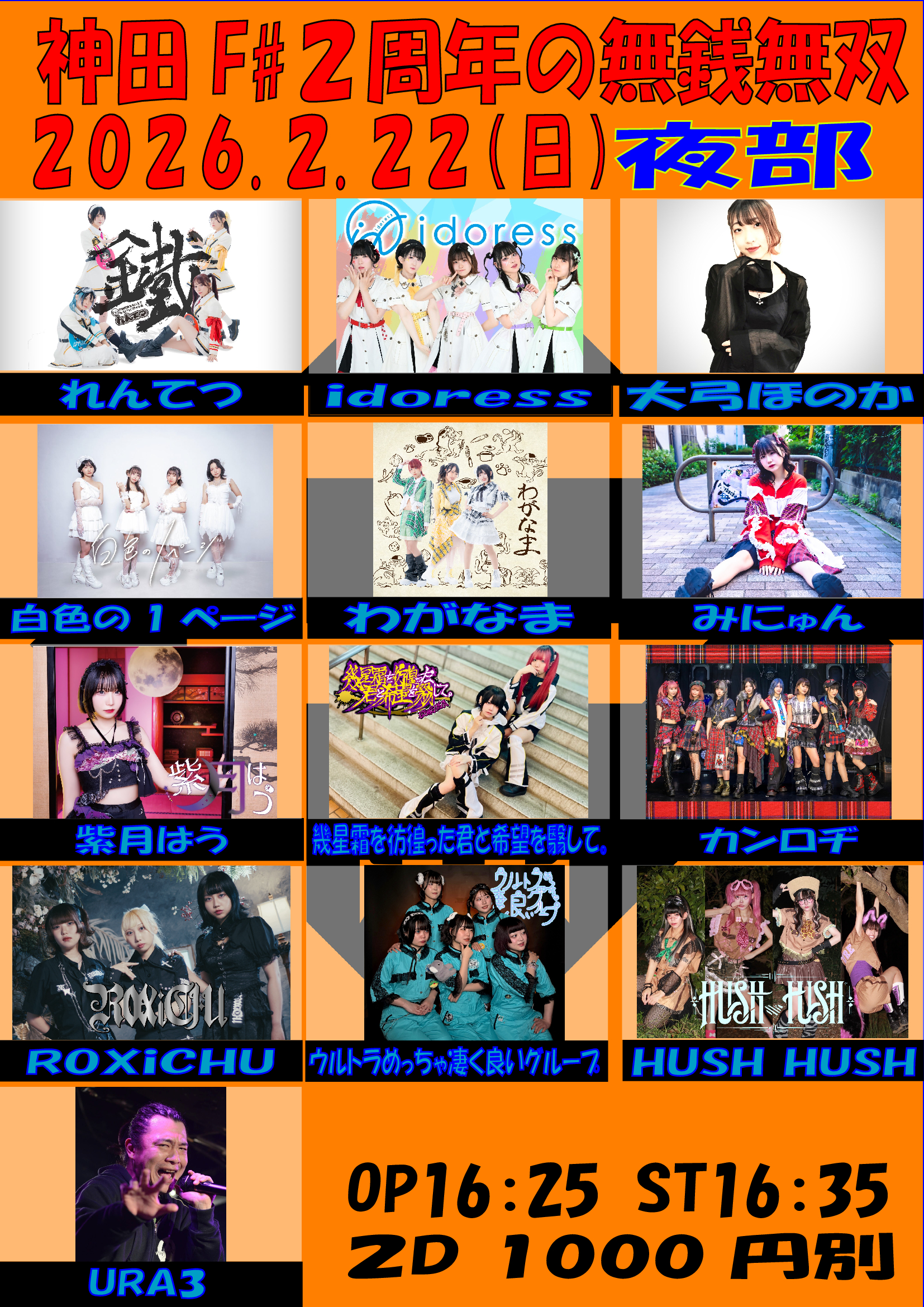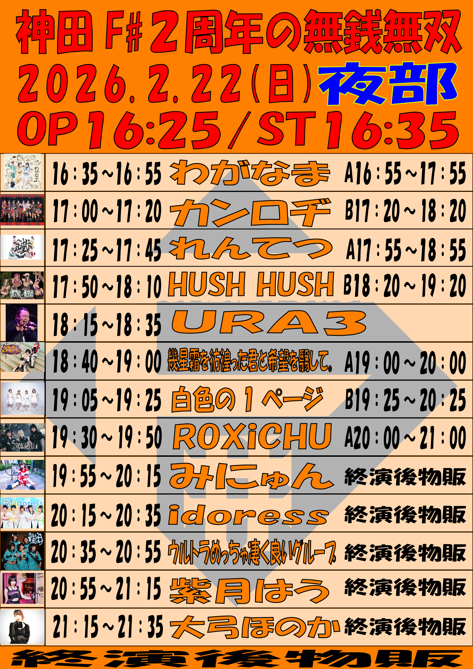 出演者 紫月はう,白色の1ページ,れんてつ,わがなま,カンロヂ,idoress,HUSH HUSH,幾星霜を彷徨った君と希望を翳して。,ウルトラめっちゃ凄く良いグループ,みにゅん,大弓ほのか,ROXiCHU,URA3
